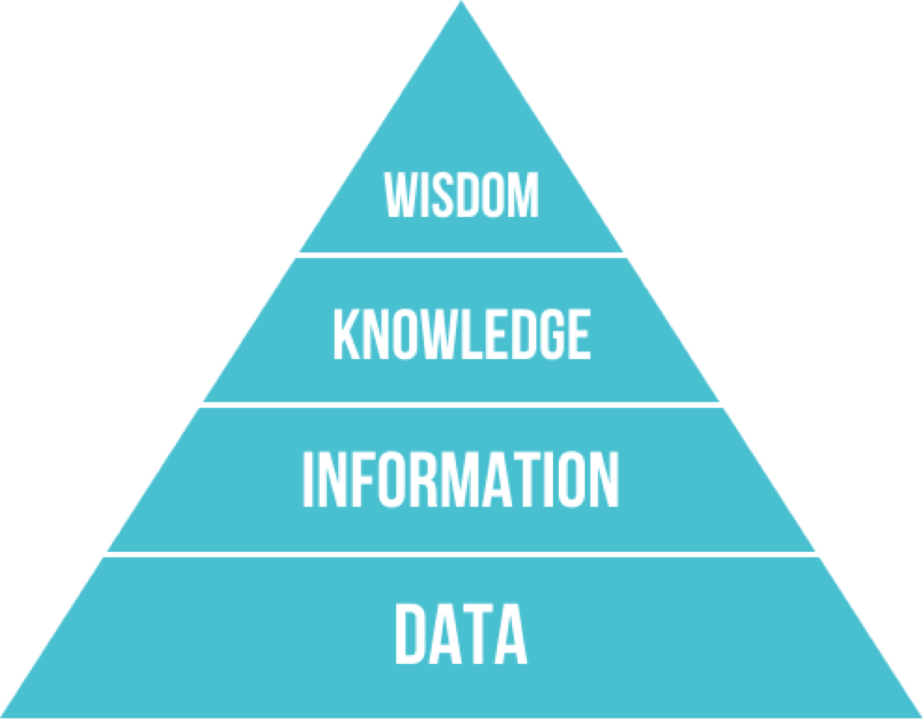 Finally, we evaluate and synthesize knowledge in an organizational context to create wisdom.