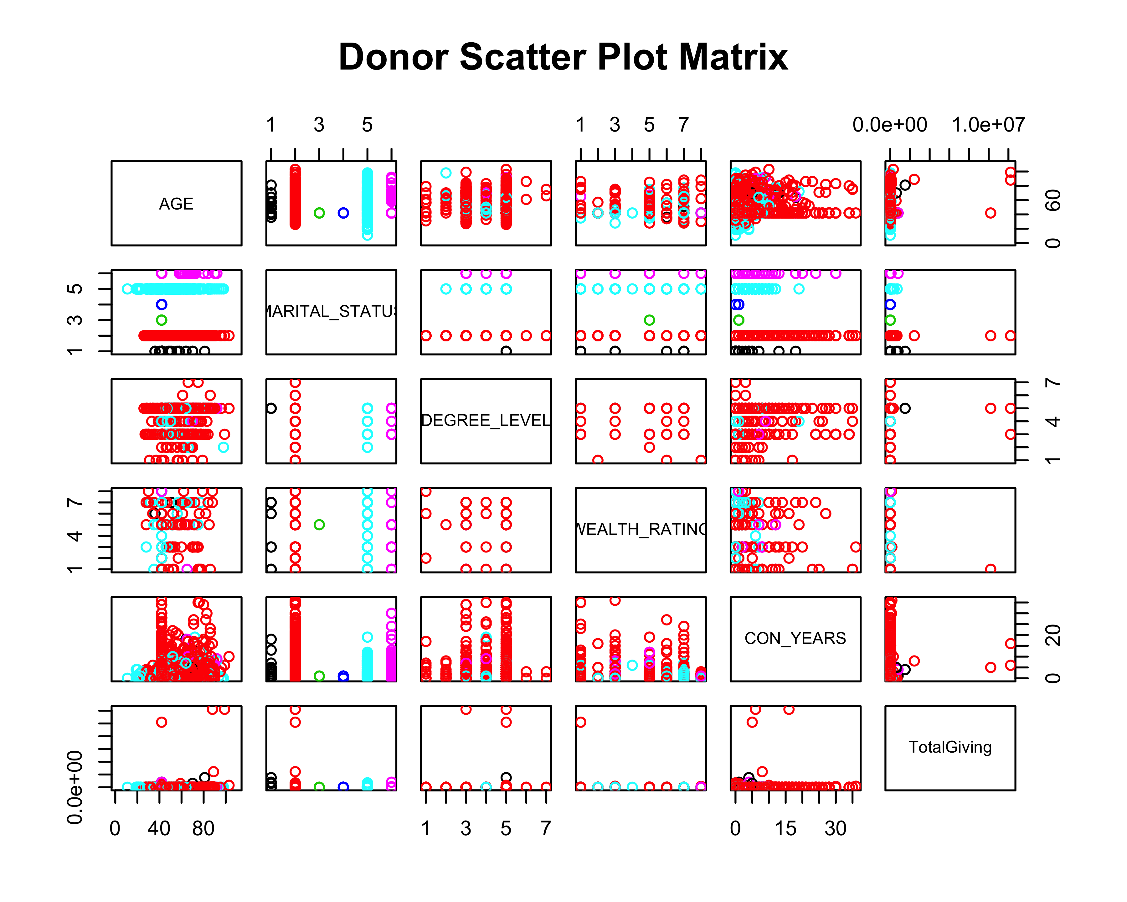 main = "Donor Scatter Plot Matrix")
