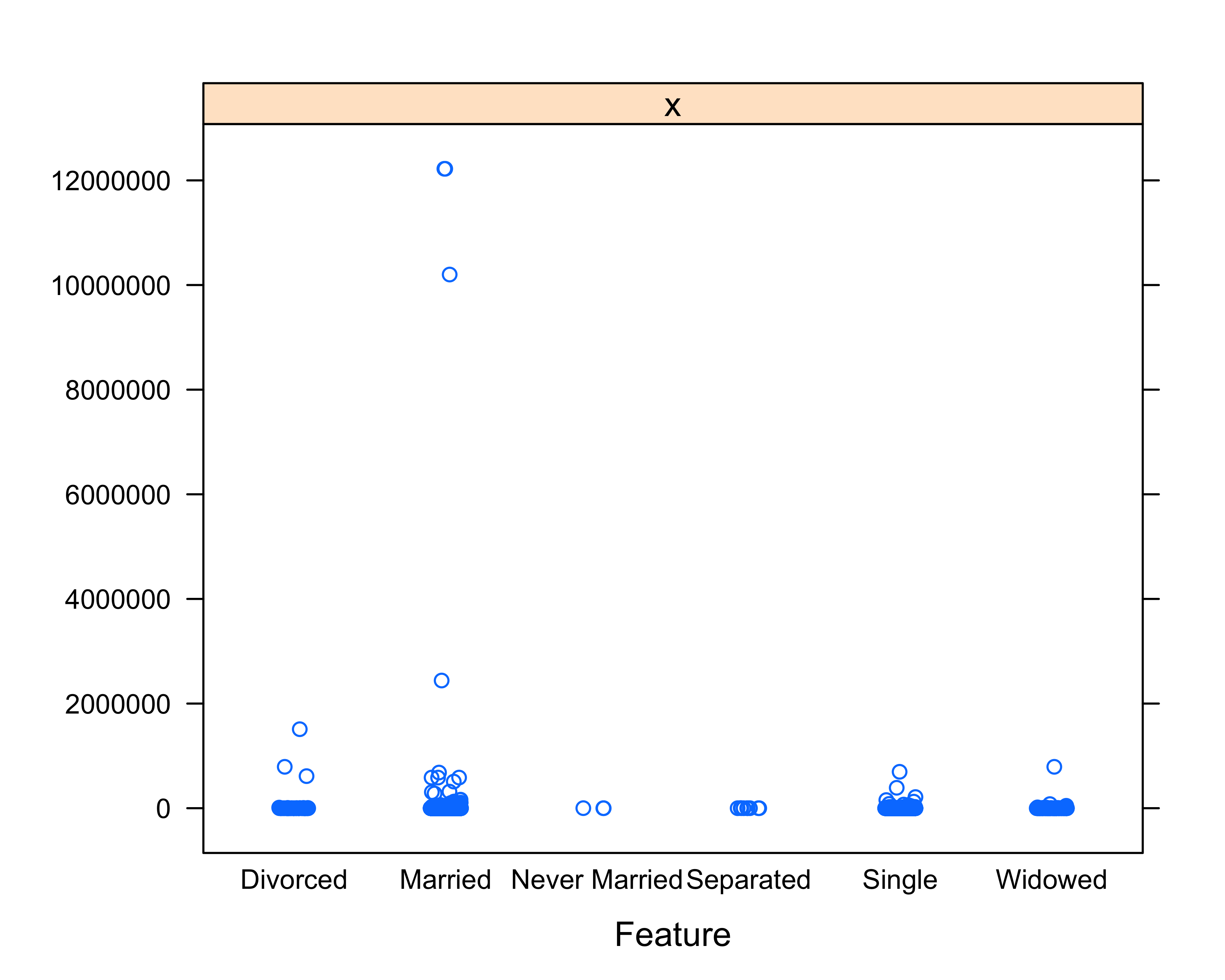 featurePlot(x=donor_data$TotalGiving,